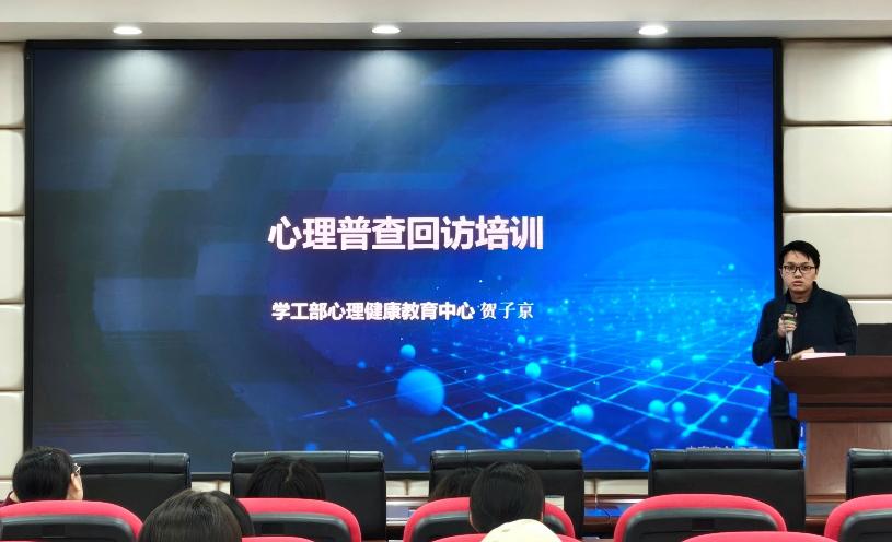 2025年11月7日下午,食品与生物工程学院在工科三号楼A320会议室举办心理普查回访专题培训会。会议特邀华体会中国心理健康教育中心贺子京老师担任主讲,院党委副书记练黎旋出席,学院全体参与心理普查回访工作的教师参加。本次培训旨在进一步提升教师在学生心理状态评估与访谈方面的专业能力,推动心理普查回访工作精准、规范落实。