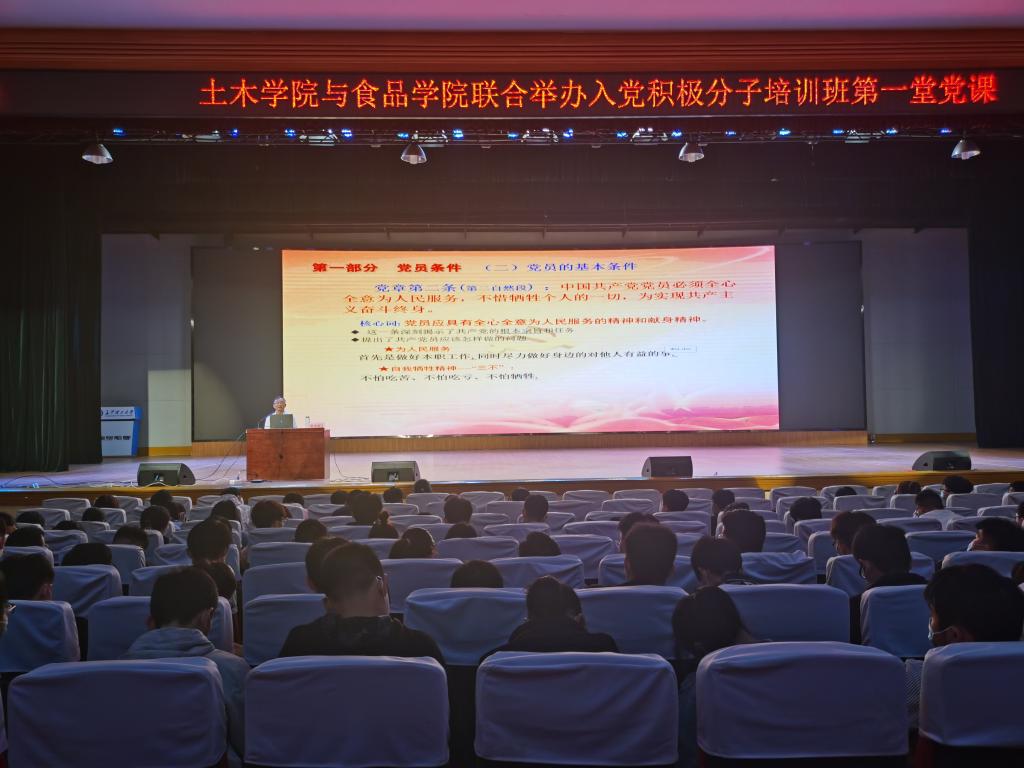 4月15日晚,食品学院于金盆岭校区五教大礼堂开展《党员条件和入党程序》专题党课。本次党课由华体会中国原副校长黎正稳教授主讲,本期积极分子培训班全体学员参加。
