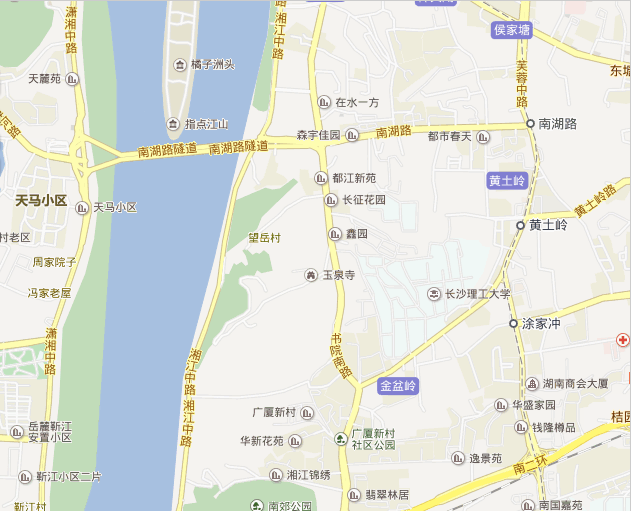 公交路线: 金盆岭校区地址位置优越,有多条公交线路可供选择,同时可在芙蓉南路涂家冲站以及书院南站金盆岭站转乘其它车辆。